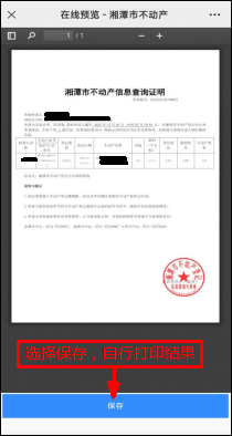 ⑹.點擊“保存”,自行打印即可,如需重復查看查詢結果,可在公眾號“個人中心”內點擊查詢歷史查看